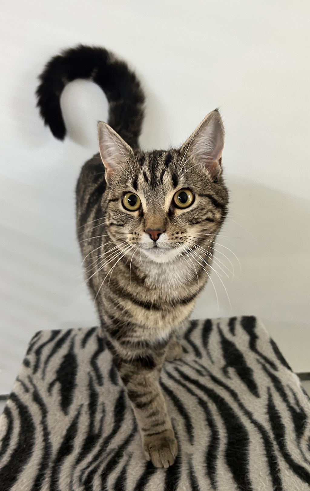 Meet Daisy, our sweet tabby girl who is ready to find her forever home! As a shorthaired kitten, Daisy is a beautiful blend of soft stripes and warm hues, and her gentle nature makes her a delightful companion. Initially shy and a bit reserved, she is gradually learning to trust and thrive in a loving environment. After being rescued from a difficult situation where she was abandoned, Daisy is now on the path to discovering the joys of a nurturing home. A quiet setting would be perfect for her to continue building her confidence and to flourish into the loving companion she was meant to be.