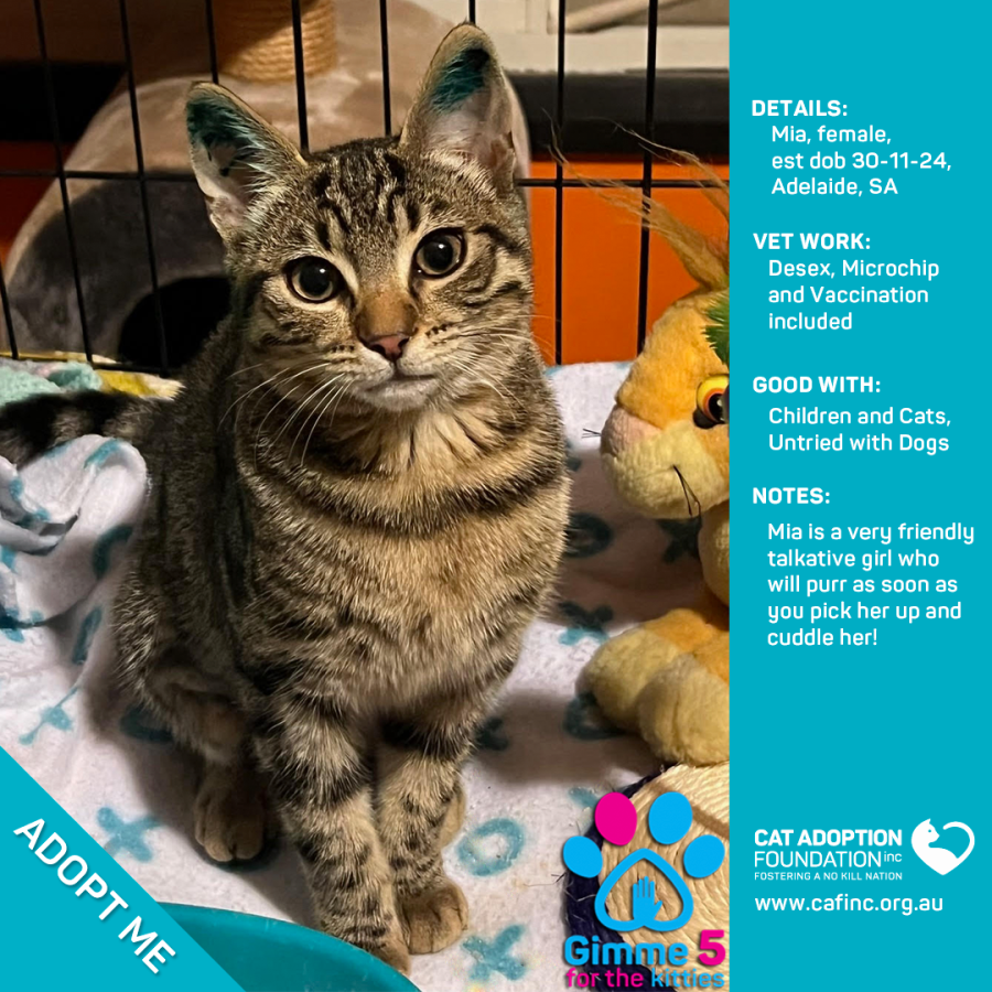 Donate to Mia at Cat Adoption Foundation Incorporated via Shout