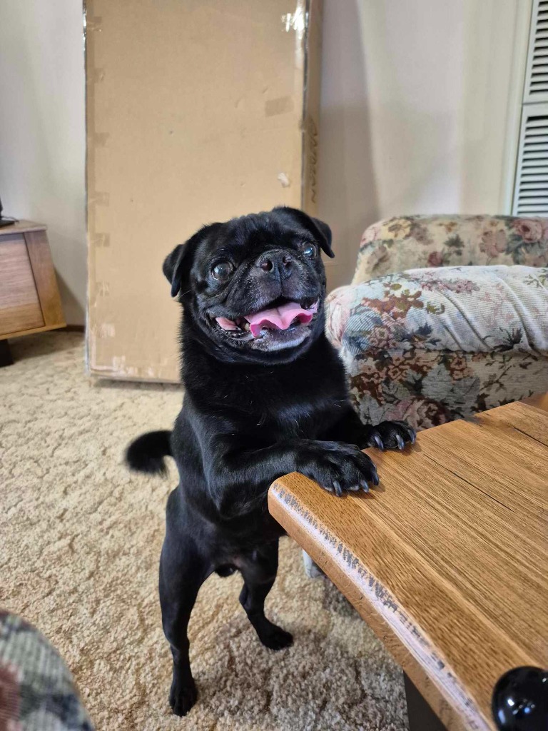 Toby is an extraordinarily happy little 6 year old pug located in Numurkah, VIC . He’s always running about looking for his next toy or pat, maybe even some food! He is quite high energy and zooms over everyone’s laps and around the house. His favourite toys are a tennis ball or a soft squeaky toy. If you let him, he will roll around on your lap getting as much scratches as he can with his legs poking out behind him. Toby may be too high energy for very young children or older people who struggle with balance.