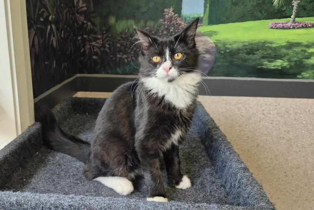 I have perfected the art of the irresistible purr. It's like my secret weapon for getting all the cuddles and chin scratches I could ever want. Life's just one big, exciting string of moments, and I'm here to make every second count - whether I'm chasing my tail or sharing some purr-fectly quiet time with my favourite humans. So, if you're up for a bundle of furry fun and a lifetime of companionship, please consider adopting me!