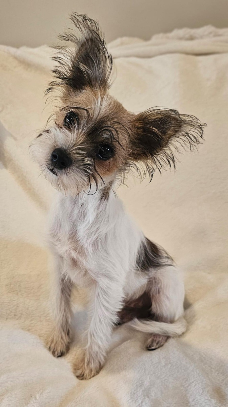 As we have no history on her prior to entering the pound, we are unsure of her breed makeup but looking at the litter it is evident they are small breed mixes, however one of the siblings has cattle dog markings on his legs so any potential homes will need to have experience with dogs that are higher drive than a lot of little breeds are. That being said, she is an absolute dream to have around and provides her foster parents with days filled with laughter and so much love.
