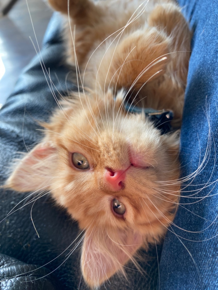 Blaze came to us as part of our Last Litter Program. He is the calm one that will sit and watch his brothers craziness before joining in. Often found with food still stuck in his nose he is not great at cleaning his face. Fun time he loves chasing, bouncing, attacking toys and spending time cuddled up in the sun or on a knee. He is small child and older cat tested but not dog but with his easy going personality with slow Introduction to a quiet dog he would be friends fast.