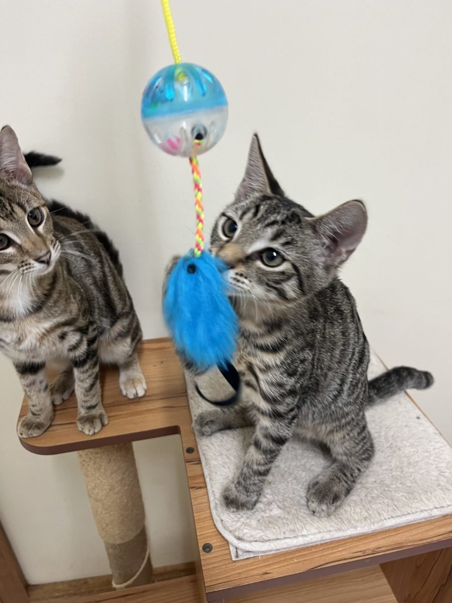 Asher is a confident affectionate boy he has started harness training and had all his vet work done loves his food uses the litter tray well. Asher enjoys playing with the kittens in care racing through the cat tunnel and up the cat tree he also loves a cuddle he will often put his front paws on you very gently asking to be picked up for a cuddle he is the sweetest boy