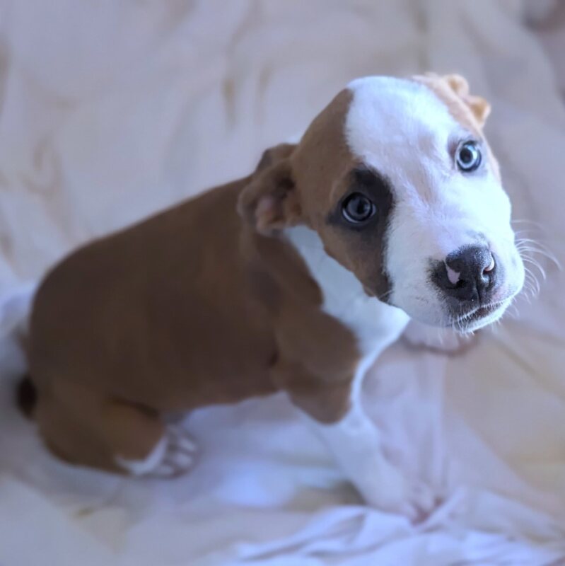 Hello there! My name's Mousey, and I'm a two-month-old male Staffordshire Bull Terrier puppy. Despite my tender age, I'm quite the social butterfly, especially when it comes to my fellow canines. I love making new friends and learning about life. Since I'm still a young pup, I need someone who can provide me with daily opportunities to grow and explore. I promise I'll be a quick learner! I don't mind the hours you work, as long as you can share some quality time with me. I don't have any known issues with children or other animals, so I'll fit right into any loving home. I promise to be a loyal companion and bring lots of joy and laughter into your life. If you're looking for a cheerful, friendly, and energetic buddy, I'm your guy. Can't wait to meet you!