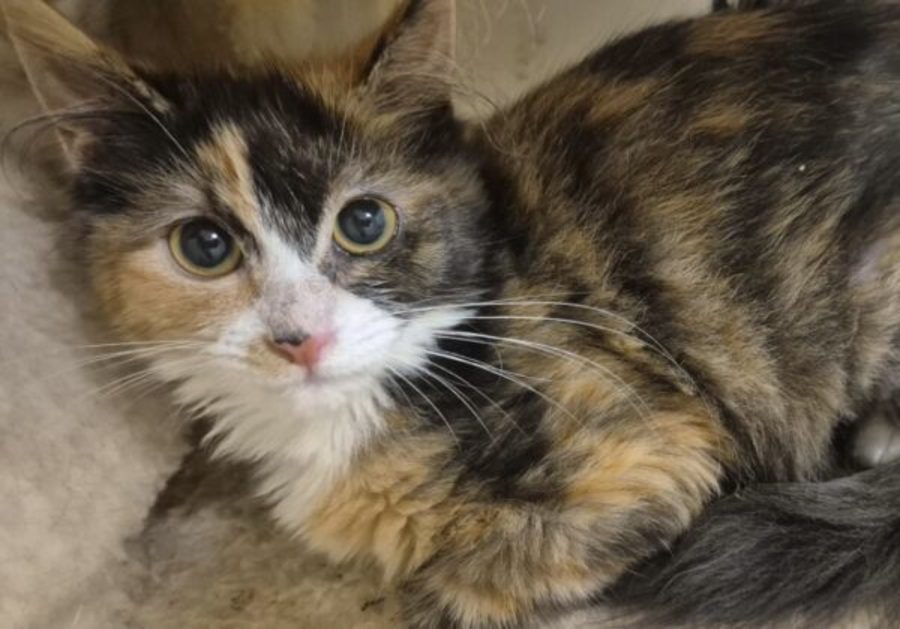 Meet Chloe, a sweet and playful 4-month-old calico kitten with the softest medium-length fur. This little girl has a gentle nature and enjoys cuddles once she’s comfortable. While she may need a little time to settle into a new environment, she blossoms into a loving and affectionate companion once she feels safe.