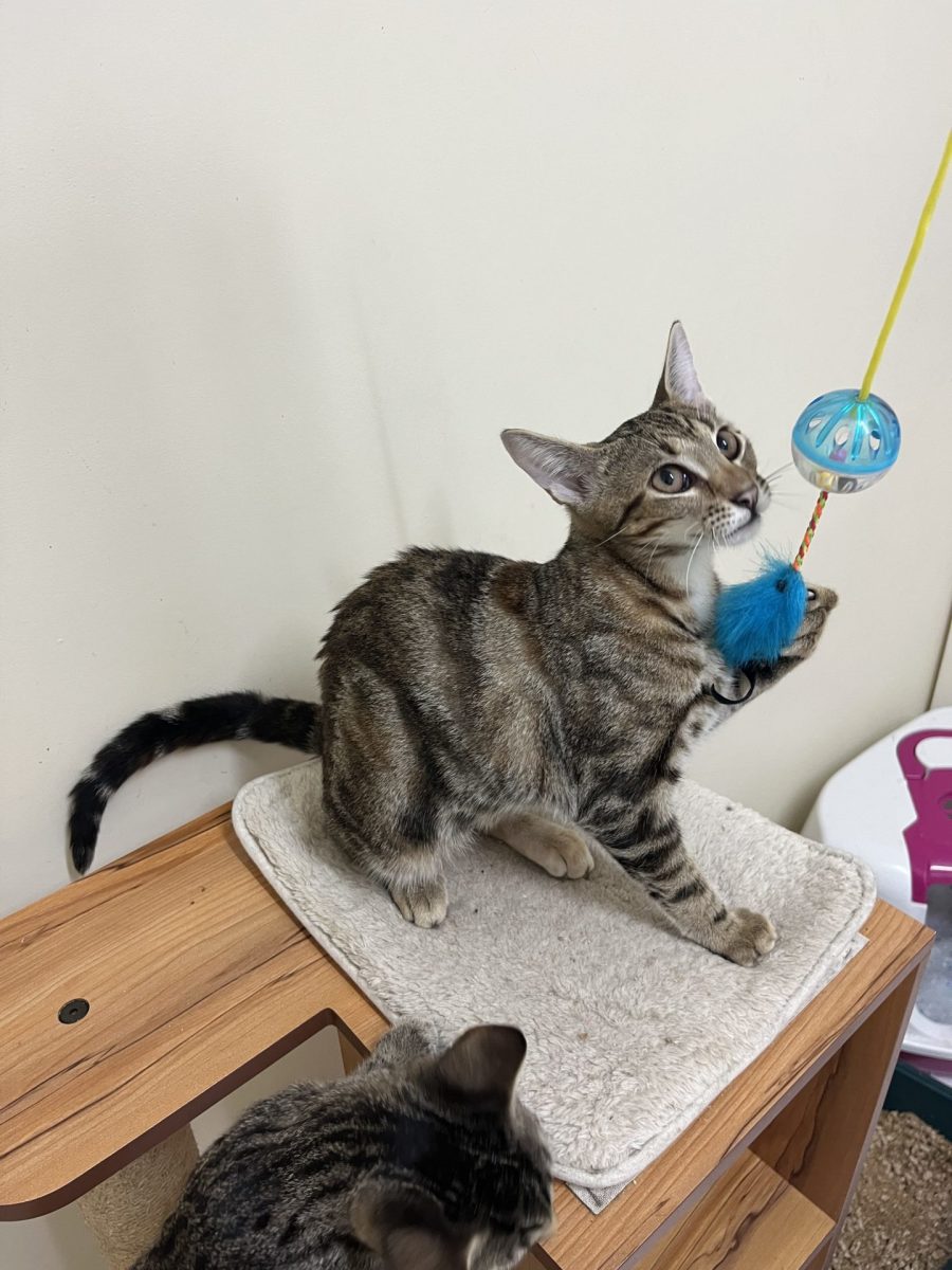 Zig zag is the sweetest loving gentle girl she loves to play with her brother Asher chasing him through the cat tunnel then sitting up on the window sill to watch the other kittens play. Zig zag has had her vet work done uses the litter tray well loves her food and loves a cuddle