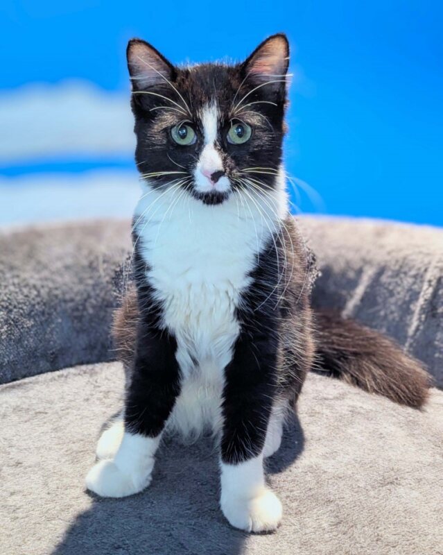 Hello there, I'm Scout! I'm a cute little 4-month-old Domestic Short Hair kitten. I'm as playful as can be and love a good game of chase with my favourite ball. I'm also a girl who knows the value of a good nap, preferably in a warm sunny spot or cozied up next to you. I'm still learning about the world around me, so I can be insecure to begin with. I'm suited to a family who will be patient with me as I grow and explore. I promise to pay you back with endless purrs and lots of love. I may be small now, but I have a huge heart and can't wait to share it with you. Will you be my forever family?