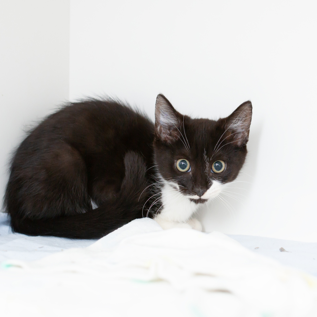 Courtney is a gentle and timid kitten with the softest fur and the sweetest little face. This adorable baby is still learning to trust the world, but with patience and love, she's sure to blossom into a devoted companion. Oreo enjoys quiet environments, cozy hideaways, and gentle pets once she feels safe.