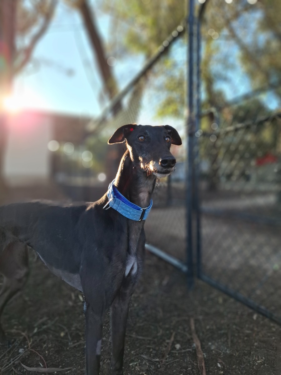 Shirley is an excellent traveller and adapts well to car rides. Her preference is to hang out with her people. While Shirley is still learning to navigate the canine social scene, she has a particular fondness for other greyhounds and enjoys their company both on and off the lead. For her household, she'd thrive as an only dog or with another greyhound friend.