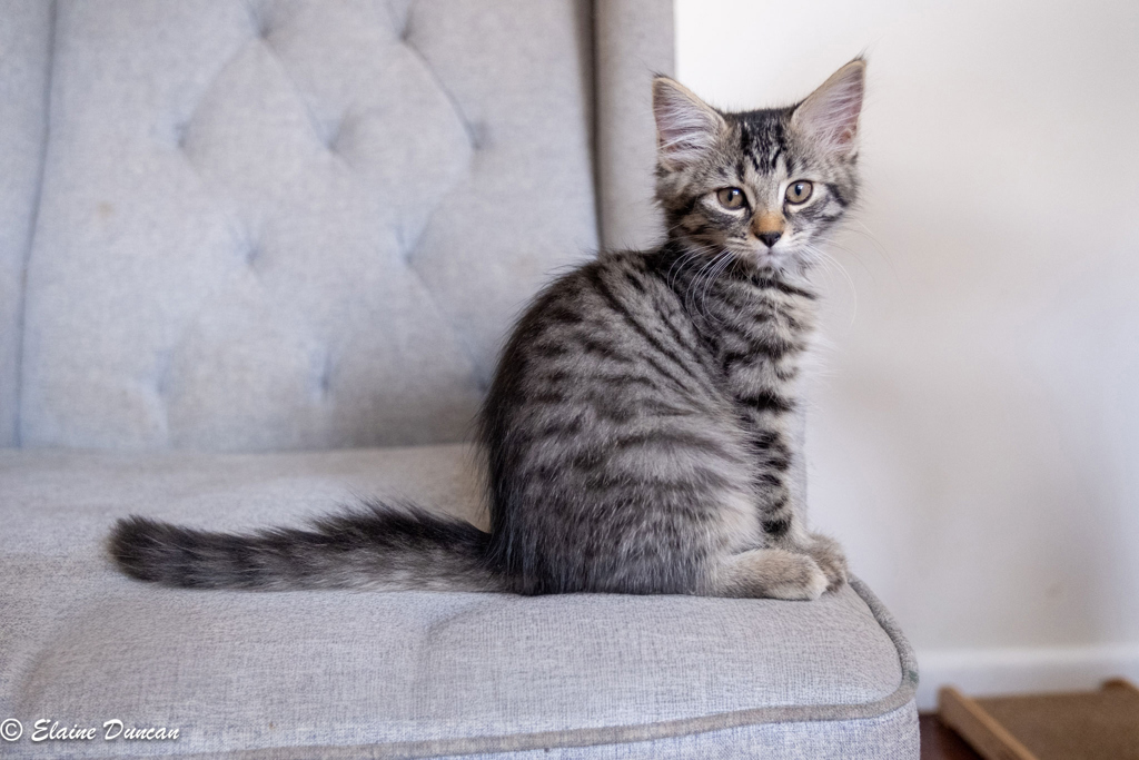 Meet Pepper, the most affectionate and snuggly kitten who adores her humans. She is always looking for ways to get up close and personal with her people. She will softly purr her way into your heart, staring sweetly at you until you pick her up. Pepper is super chilled and will fit into any family home, getting on with everyone she meets, including new feline and canine friends.