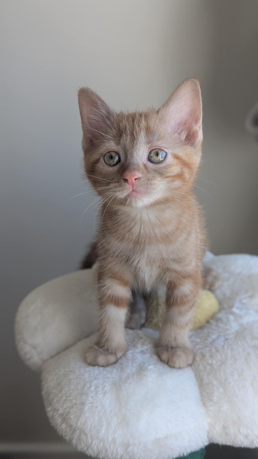 Brooklyn is cheeky little ginger tabby full of sass, energy, and charm! She’s always the first to climb, chase, and pounce, and her personality will keep you laughing all day long. But once she’s done playing, she turns into the floppiest, cuddliest kitten around, happily melting into your arms like a baby and falling asleep.