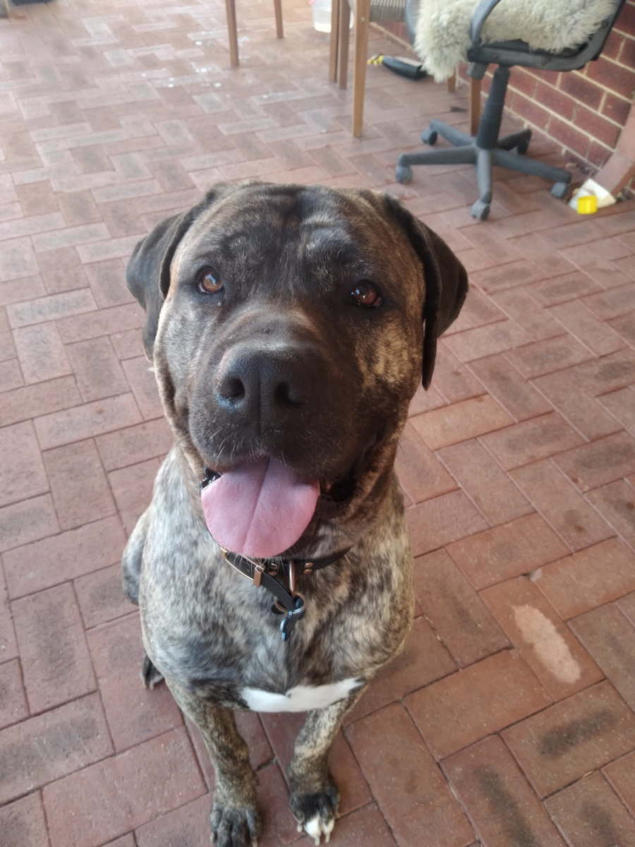 Mr D is a brindle 59 kilo male bullmastif 7 in July.