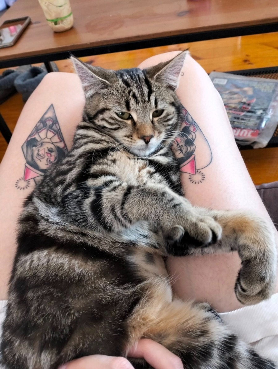 Miss Pepper Sanchez is such a little lovebug and enjoys cuddles on your lap and laying on your hands so you are unable to do the work you're supposed to be doing.
