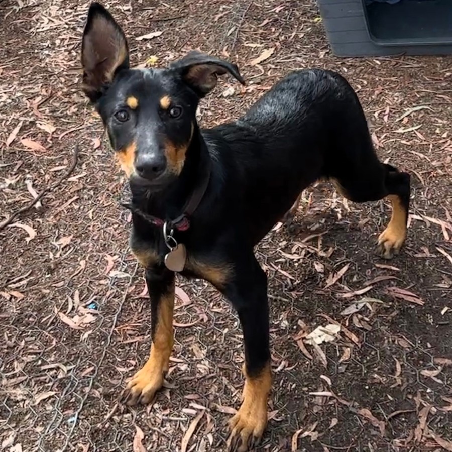 True to his kelpie self he is an intelligent, active pup who is eager to learn. He loves playing and running with his siblings. He has been learning about toys in foster care and thinks they heaps of fun. Even better if foster Mum plays with the toys too.