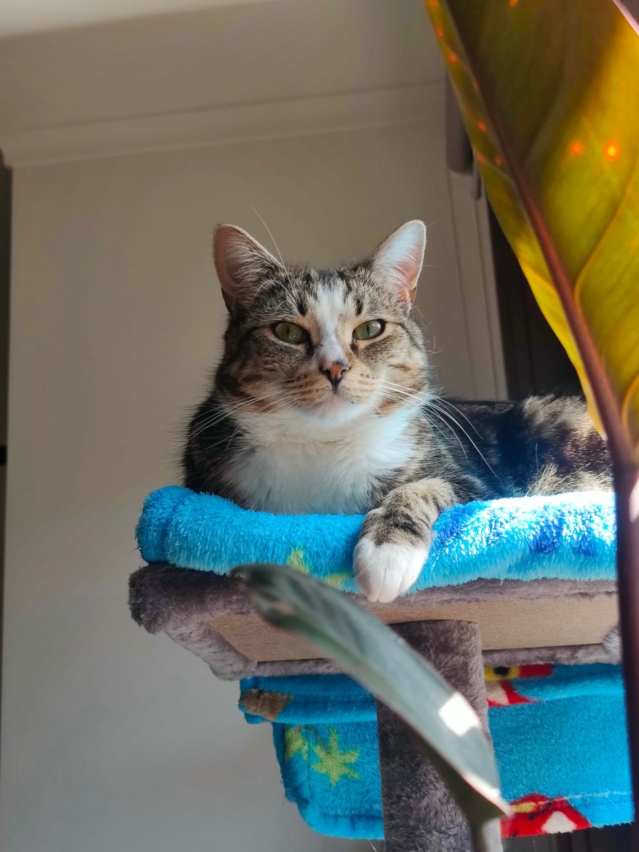 Clover loves having a chat with the local birds through the window and is rather enthralled by American wildlife as seen on his favourite cat tv channel on YouTube. Clover has seriously taken inspiration from the recent Olympics and has developed into quite the athlete in the home. Clover is often seen sprinting around the house, chasing his tail, and showcasing his parkour skills by bouncing off the wall! He loves food and is quite a vocal conversationalist (usually one-sided) at mealtimes. When young Clover is not bird watching, he seeks out his favourite sun puddle and is happy to be enchanted by more birds in his dreams!