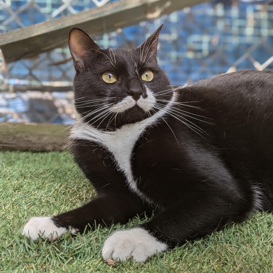 Mustang is our handsome boy with a fancy little moustache and an awkward yet lovable personality to match. He is the kind of cat who looks like he is at a party, sees someone he knows, and spends the next 10 minutes wondering whether to say hello. Despite his shy demeanour at times, Mustang is a sweet boy, but can often be misunderstood by his feline compatriots.