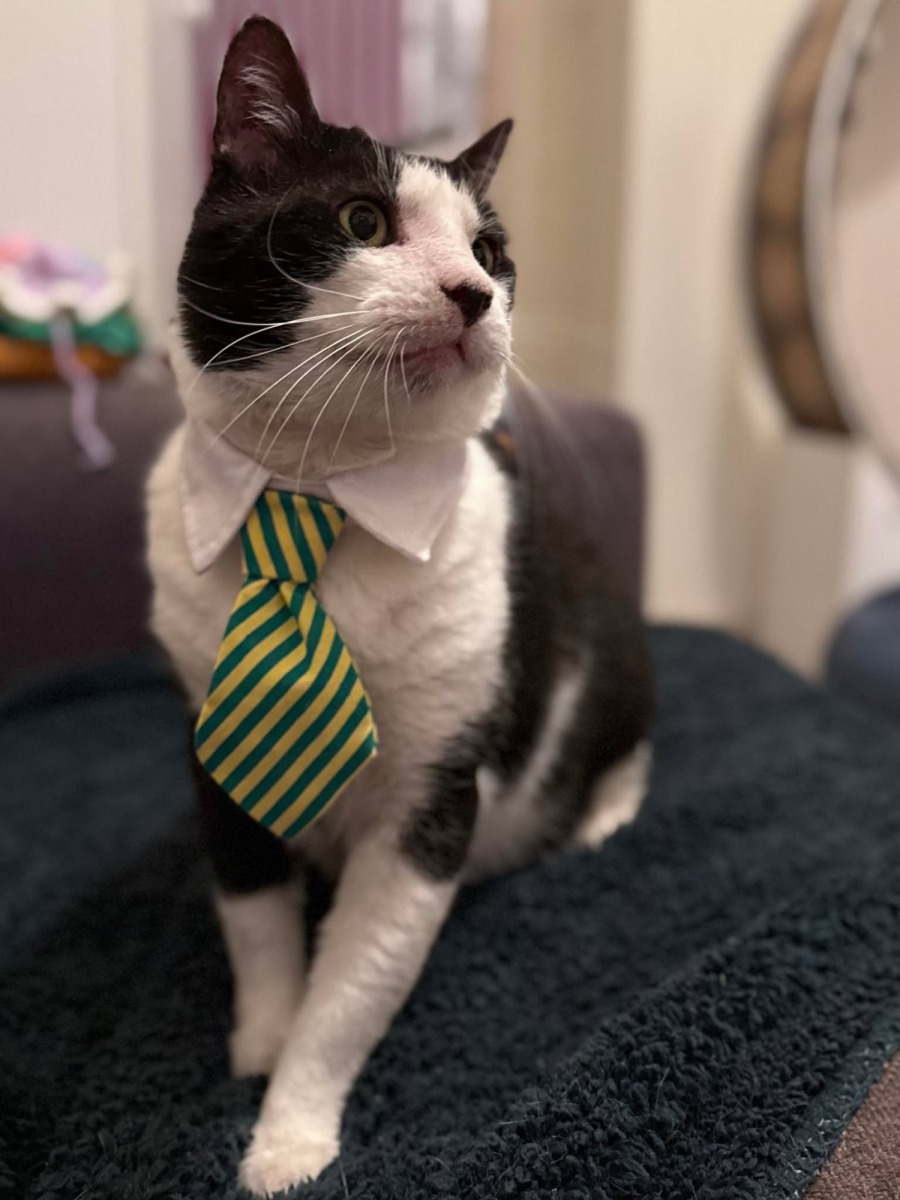 Carl is a big, sturdy cat with a striking black and white coat. He's got that "rough around the edges" charm – think of him as a lovable teddy bear with a bit of a gruff exterior. Don't let his initial shyness fool you! Carl takes his time getting to know new people and environments. He's a bit of a cautious soul, and needs a patient and understanding adopter who will give him the space and time he needs to settle in.