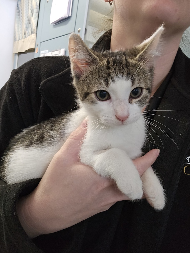 Hey there, I'm Tate. I'm a friendly and affectionate kitten who would suit most homes! My playful paws are always ready to pounce on anything that moves. I love playing with wand toys and mysterious shadows on the wall! When I'm finished playing, I love nothing more than finding a warm lap to curl up in.