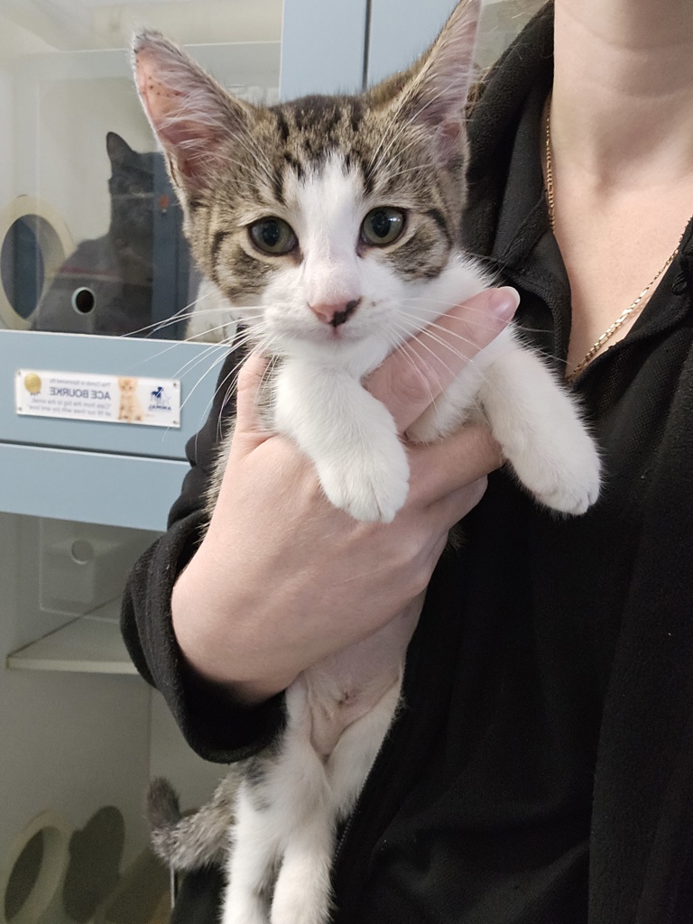 Hey there, I'm Teeka. I'm a friendly and affectionate kitten who would suit most homes! My playful paws are always ready to pounce on anything that moves. I love playing with wand toys and mysterious shadows on the wall! When I'm finished playing, I love nothing more than finding a warm lap to curl up in.