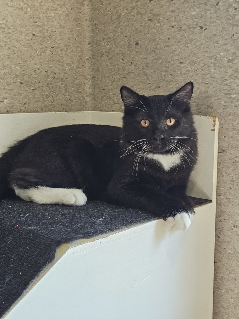 I have perfected the art of the irresistible purr. It's like my secret weapon for getting all the cuddles and chin scratches I could ever want. Life's just one big, exciting string of moments, and I'm here to make every second count - whether I'm chasing my tail or sharing some purr-fectly quiet time with my favourite humans. So, if you're up for a bundle of furry fun and a lifetime of companionship, please consider adopting me!