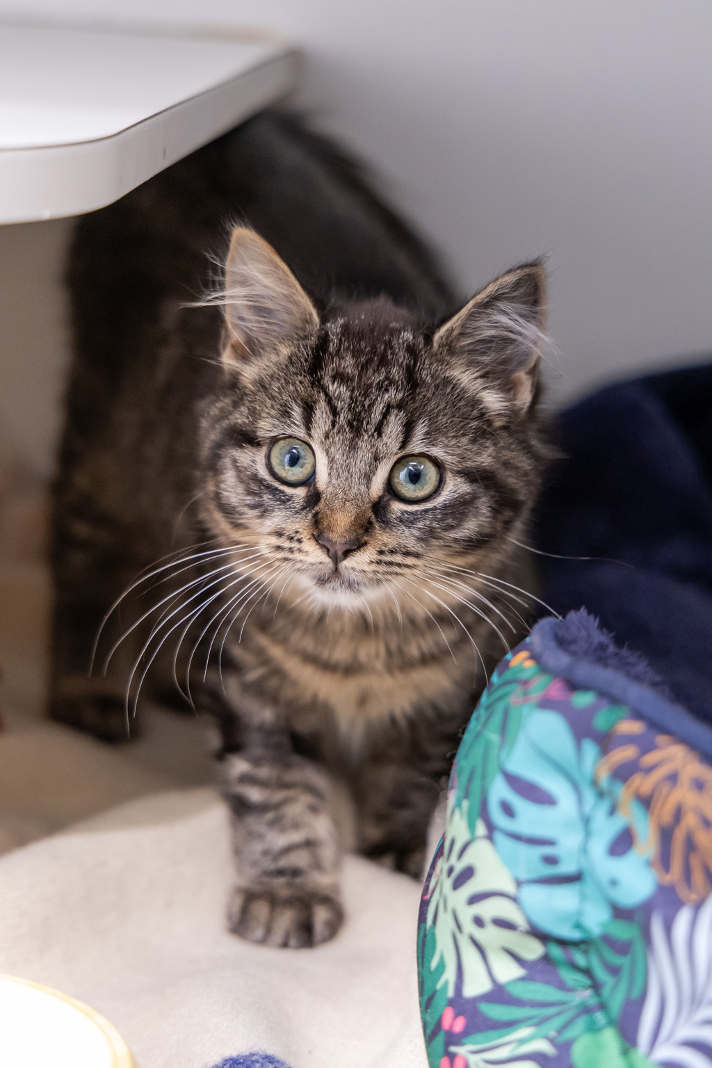Hey there, I'm Fungi. I'm a friendly and affectionate kitten who would suit most homes! My playful paws are always ready to pounce on anything that moves. I love playing with wand toys and mysterious shadows on the wall! When I'm finished playing, I love nothing more than finding a warm lap to curl up in.