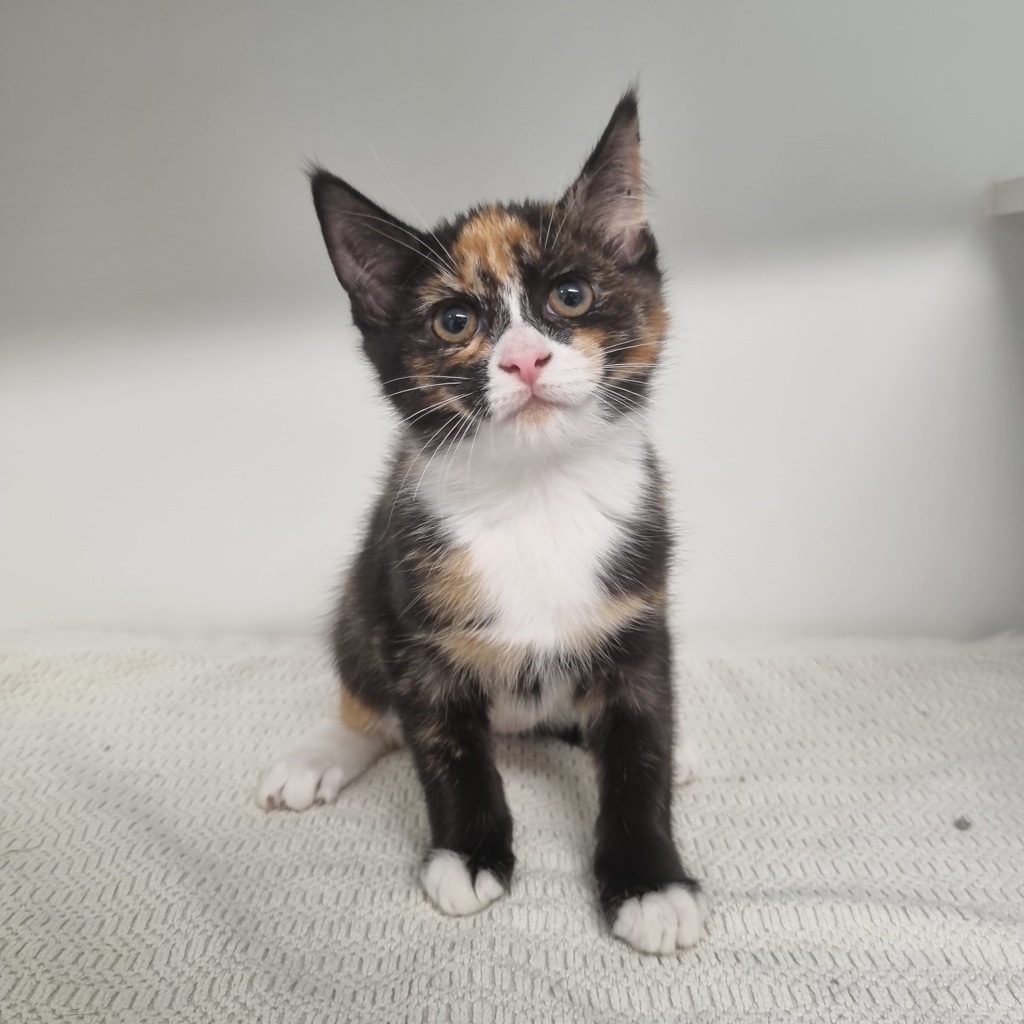Since we're still young, our personalities are developing, and we'll thrive in a stable home. Please be patient with us as we adjust to our new environment. A safe room to get used to new sounds and smells would help, along with a scratching post, a comfy bed, soft toys, and rolling, bell toys (our favorites)!