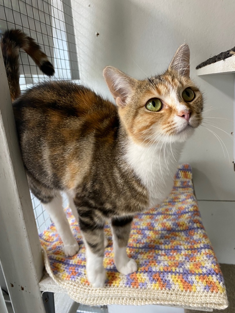 Ariel is a gorgeous tabby Tortie who arrived at Just Cats with her kittens, and she was an absolute superstar mum. Now that her mothering days are behind her, she’s ready to enjoy the quiet life in a loving forever home.
