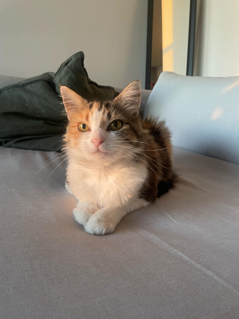 She enjoys pats and being brushed (on her terms), but with building confidence and trust it’s likely she will enjoy more human attention.