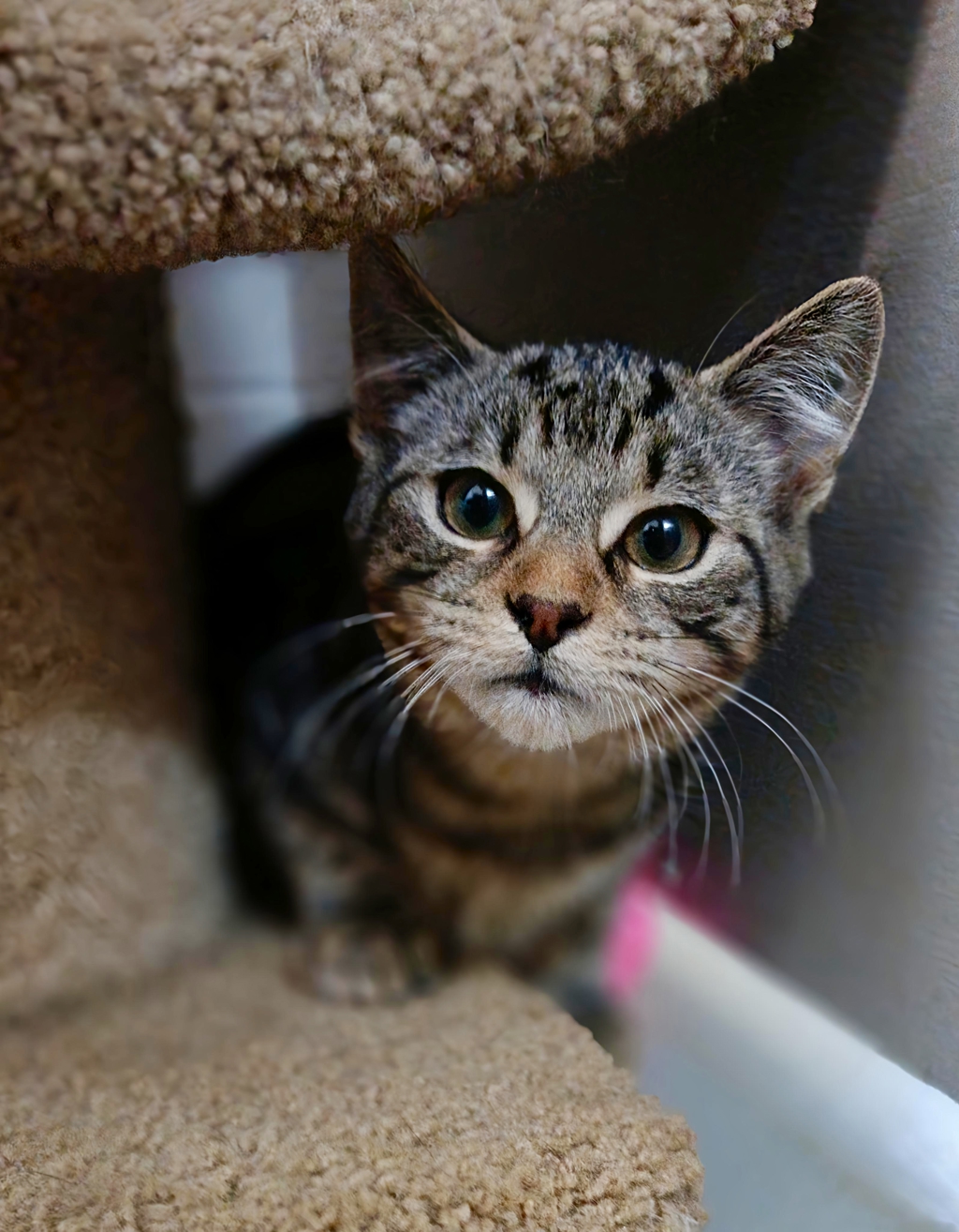 Meet Spike, a charming tabby male kitten with a heartwarming story. Found as a scared little soul in a farming area, Spike was abandoned and alone, causing him to be initially wary of the world around him. With patience and love, Spike is beginning to trust again, revealing himself to be a lovely little chap who yearns for connection. He has a gentle spirit and a playful curiosity that shines through when he feels safe. This brave little guy is progressing in his journey toward confidence, and he truly deserves a loving forever home where he can continue to blossom.