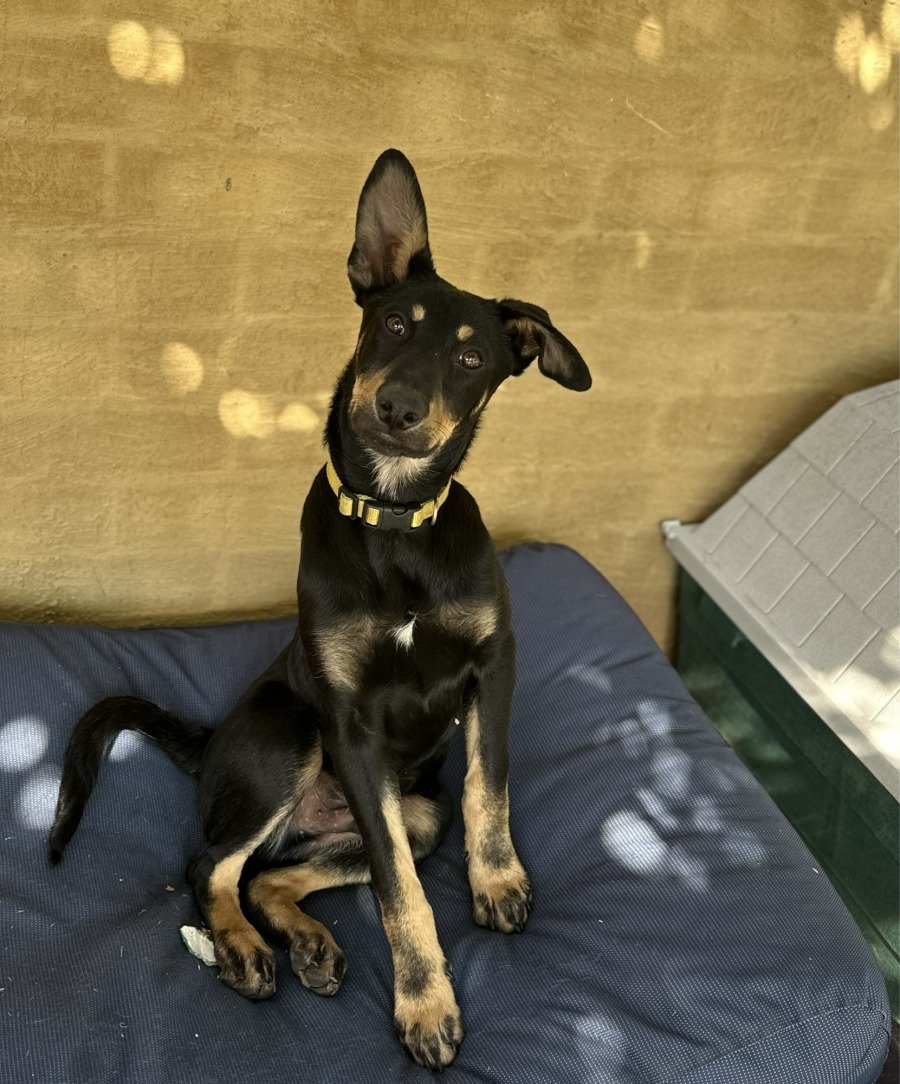 True to his kelpie self he is an intelligent, active pup who is eager to learn. He loves playing and running with his siblings. He has been learning about toys in foster care and thinks they heaps of fun. Even better if foster Mum plays with the toys too.