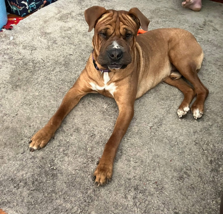 Scooby - all 42kg of him - is a 'velcro' dog, has no concept of personal space, and likes to think he is a lap dog! This makes him all the more lovable and makes you laugh when he just flops to the floor. Scooby likes being inside and outside during the day but wants to get inside to sleep. He will let you know when he needs to go outside to toilet.
