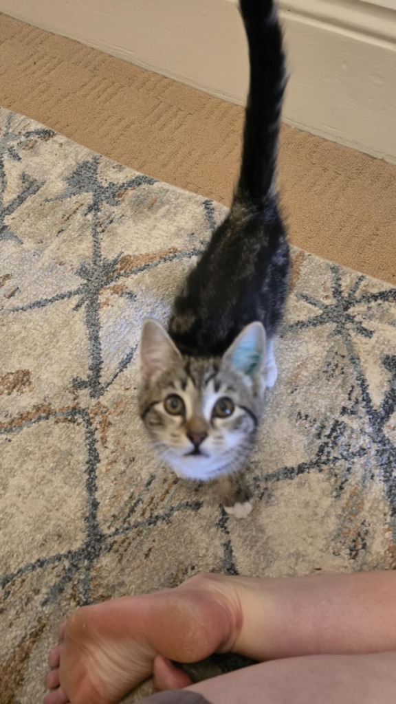 She has a big purr and enjoys ear and chin scratches. Very friendly with other kitties if there's existing pets. and gets along with her siblings!