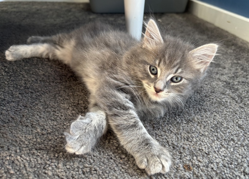 Finn loves to make biscuits and suckle on his fluffy blanket when he is snoozy and content, which luckily for Finn is most of the time. He loves attention and really wants to spend his time with his foster humans so that they can smother him with pets.