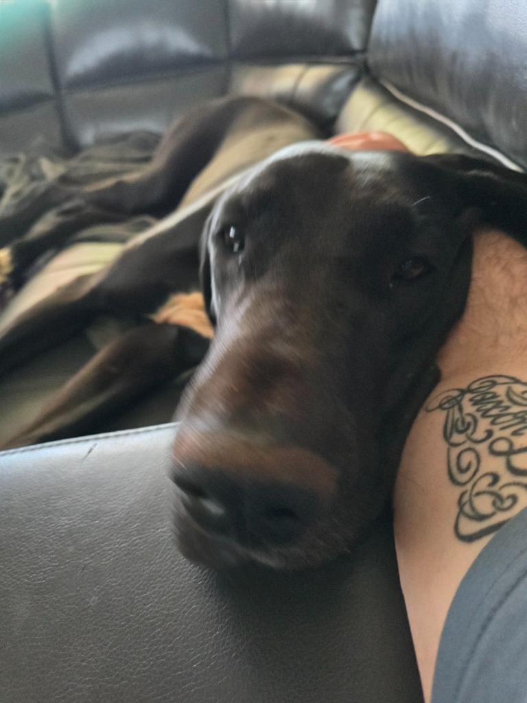 She is great at sleeping in your bed for such a big dog you don't notice she's there, she curls up into a small ball and doesn't make a fuss.