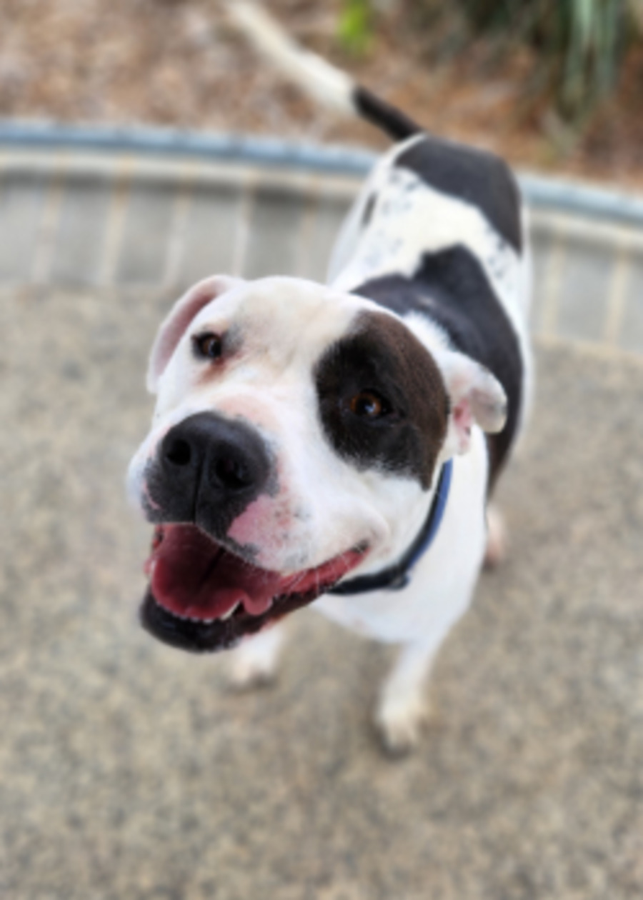 The big lovable goofball with a heart of gold! This playful American Staffy who is 3 years old loves belly rubs, zoomies and leaning in for extra cuddles. Sweet, loving and always ready for fun, Quinn is the perfect mis if silly and snuggly!