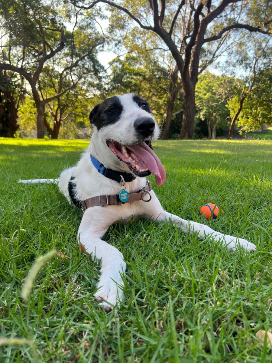 Maisie’s latest obsession is chasing balls! 🎾 She’s got a ton of energy and is a fetch superstar—she’s great at bringing the ball back, too! As long as she gets her two walks a day (where she can run and chase to her heart’s content), Maisie is a relaxed and calm companion at home. She’s a very good girl who loves to please, and with a little time and attention on her training, she’ll be the best girl she can be. Maisie also lives with two teenagers, who she absolutely adores. She loves following them around and even snuggles up with them on the bed!