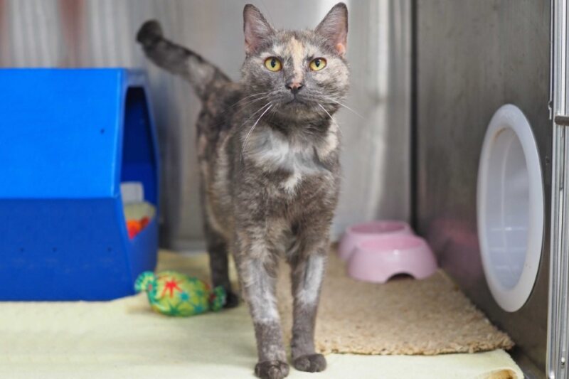 Hi, I'm Pip, a gorgeous unique older girl with plenty of love to give to the right person. Despite my age, I'm actually very adventurous and love to explore new environments, I've been in foster care with a staff member and as soon as I was out of the carry cage, I treated the home as my own, it didn't take me long to settle in at all! Now I'm happy to do my own thing at times, but I'm what you call a 'Velcro' cat. I want to be with you most if not all of the time! I will gently patty paw your arms and face looking for love, I don't like to be ignored so my new person must be willing to include me in daily activities! If you're looking for an adult cat who already has life kind of figured out, come and take me home, I'm patiently waiting for you!!