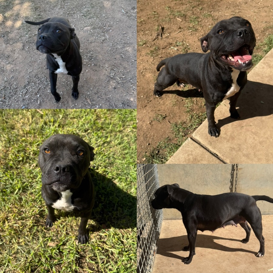 Meet Missy, a beautiful 2-year-old black and white female Staffy with a heart full of love! Missy is a sweet and affectionate girl who absolutely adores people. She may jump up to get your attention, but it’s all out of excitement and affection – she just wants to be close to you!