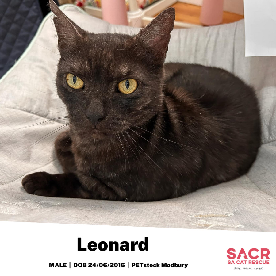 Now at a healthy 4.5kg after gaining 1.2kg while in foster care, Leonard has found stability and happiness, ready to bring joy - and a bit of comedic mischief - to his new family. If you're seeking a dashing fellow who loves with gusto and isn't afraid to express his opinions, Leonard invites you to share in his delightful escapades.
