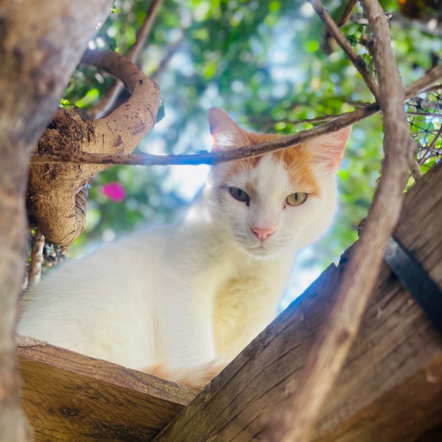 Charlie is a large built cat. He is a domestic shorthair with a beautiful white and orange coat.