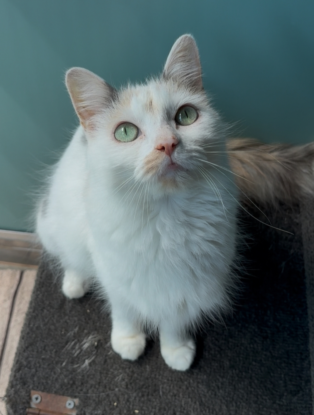 Meet Aggie! This stunning blue cream calico girl is bursting with personality and charm. Outgoing, social, chatty, and incredibly loving - Aggie has all the makings of the perfect feline best friend. While she may need a few quiet days to settle into her new home, her confident and affectionate nature will shine through in no time. Aggie is open to homes with respectful children of all ages and may also be a great fit for a multi-cat household, as she previously lived with other feline friends. With her curious and confident personality, she could even be a great candidate for harness training! Just be prepared to take it slow and steady at first, and you'll be rewarded with a loyal, beautiful and talkative companion! :)