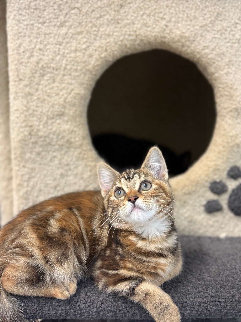 Jellybean arrived into our care at Just Cats through our Last Litter Program alongside her siblings. From here they all entered into foster care and found their own little individual space in the world. Jellybean is a very confident young lady, with a very sweet nature. One of her favourite past times is chasing and bossing her brothers around! Jellybean thrives on attention and affection, and if she isn't busy with her siblings, she will be right by your side being vocal and calling for your love! During foster care, Jellybean has been around other cats, dogs, and children, and she can win even the toughest shell over in just minutes! This beautiful little Jellybean will make the perfect addition to any home. You can meet Jellybean and her siblings at our Longford Adoption Centre.