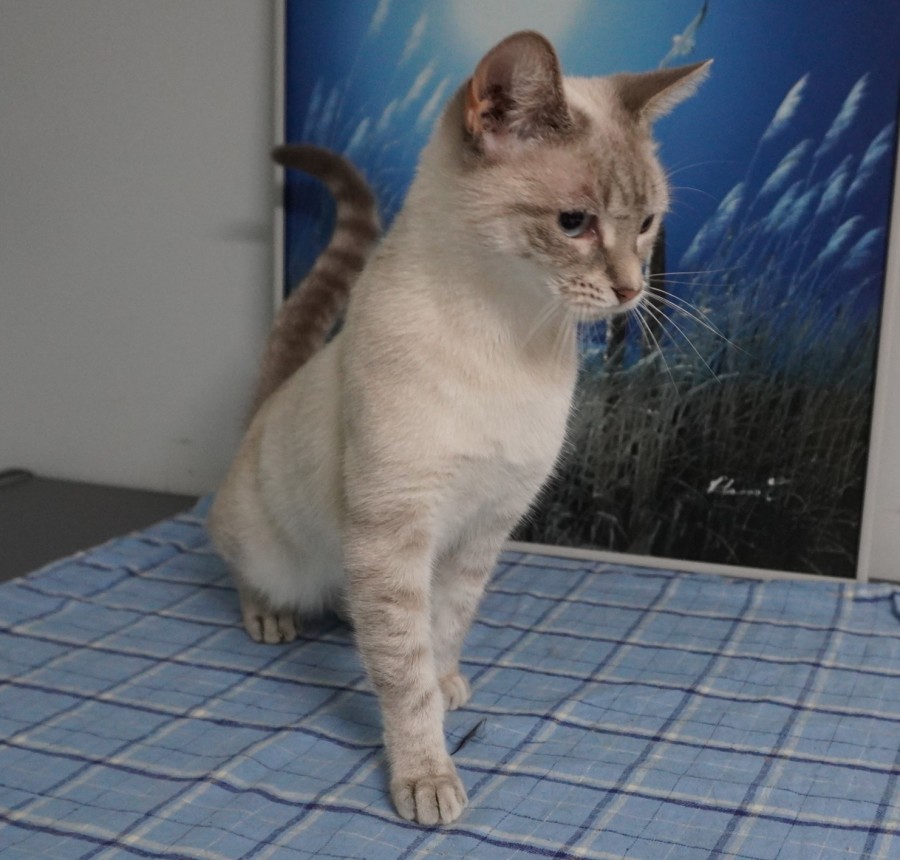 Beth is a stunning Australian Mist cross with striking lynx point markings. While she may be a little shy at first and need a few days to find her feet, once she feels safe, she becomes incredibly affectionate and loving.