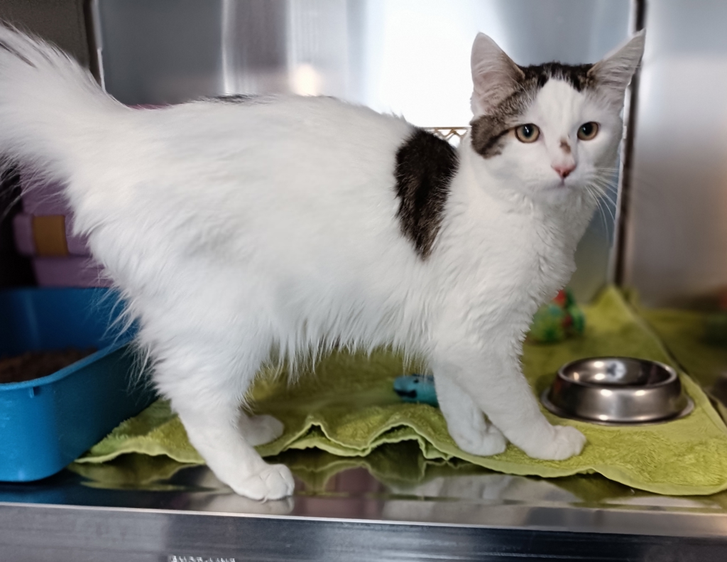 Meet Jovi, our delightful fluffy male kitten with a charming coat of white and tabby fur! Jovi is not just a pretty face; he's a cheeky little character with a knack for making everyone laugh. His playful antics will leave you in stitches as he darts around, pouncing on anything that moves and showing off his acrobatic skills. He loves to interact and will happily chase after string toys or engage in a game of hide-and-seek. However, with his energetic spirit, Jovi may have a tendency to play a little too hard, making him a better fit for households without very young children.