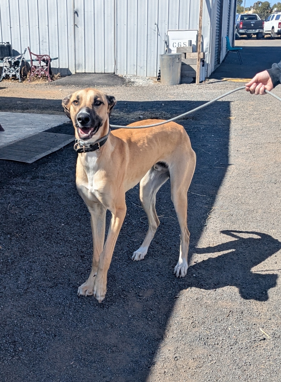 Meet Horse! He's a strikingly tall and charismatic dog whose charming personality is sure to steal your heart. Despite his impressive stature, this young male is often described as a "giant baby," with an endearing affection for humans and a big heart to match.