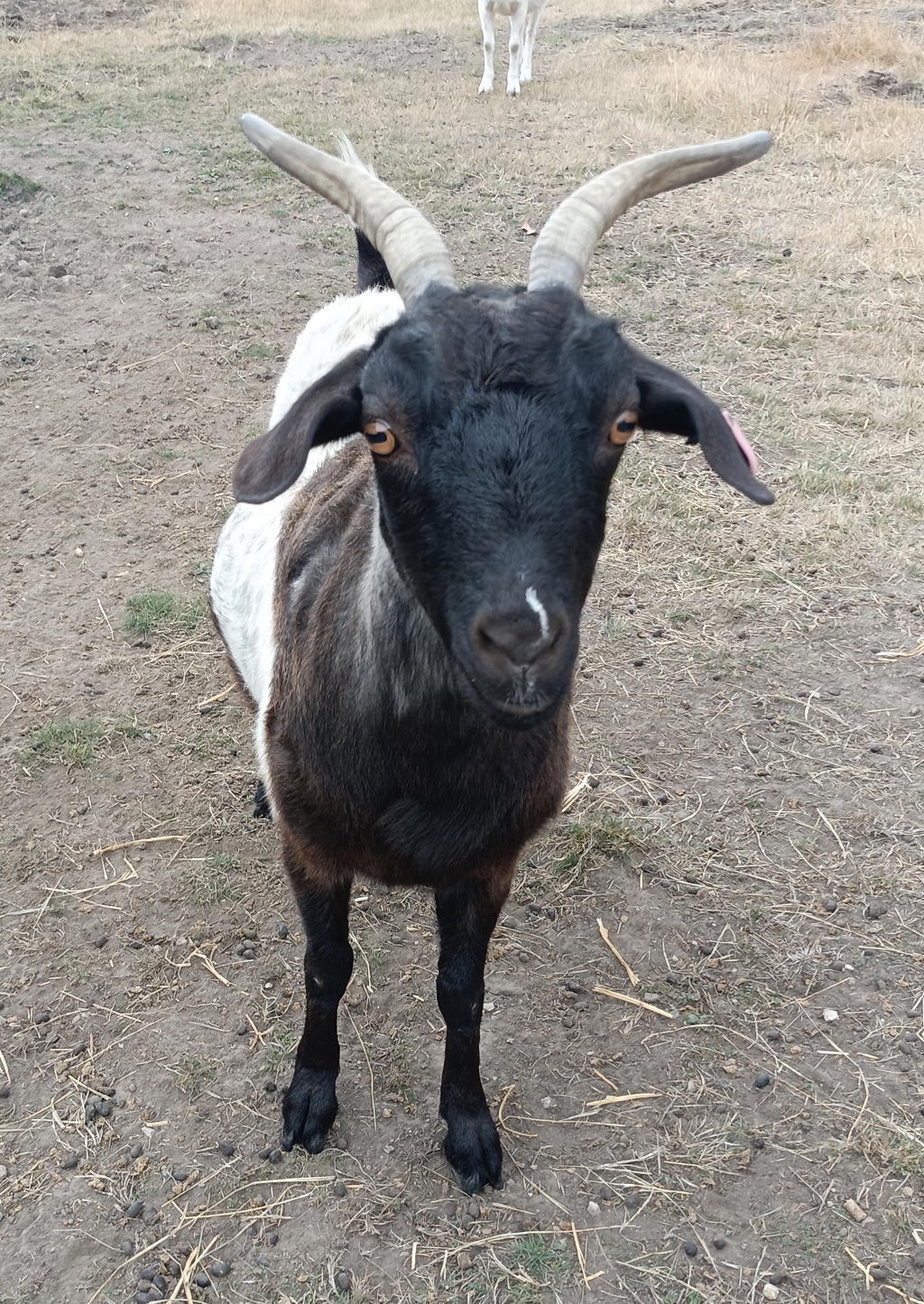Like all goats, Buttons enjoys a diverse diet and loves to browse on an array of greenery and roughage. Her favorite pastime is chewing on willow branches, which keeps her engaged and satisfied. Whether she's frolicking in the sun or nibbling on delicious treats, her playful spirit is sure to bring a smile to your face. If you're looking for a sweet companion who will bring happiness to your home, consider welcoming Buttons and her mother Cookie into your family today!