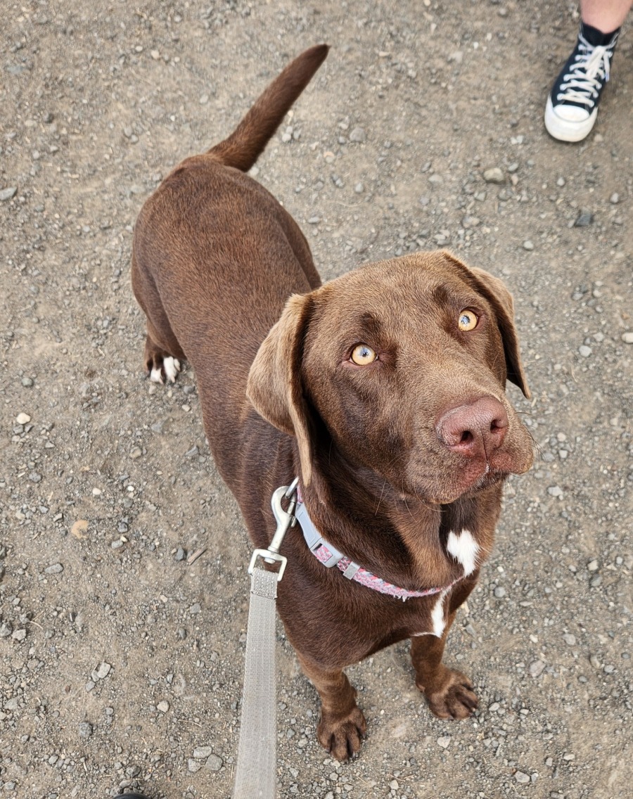 Meet Liz, a 1-year-old Labrador x German Shorthaired Pointer who was surrendered through no fault of her own. Liz is a clever, affectionate young girl with a zest for life and a big heart to share. She's great with people and other dogs and would likely enjoy the company of a well-matched male dog in the home. While she hasn't lived with kids before, we think she'd be a lovely match for dog-savvy children. Liz is house-trained, walks beautifully on lead, and is eager to learn-making her a fantastic candidate for further training. She hasn't been tested with cats or pocket pets. Please submit an application via our website.