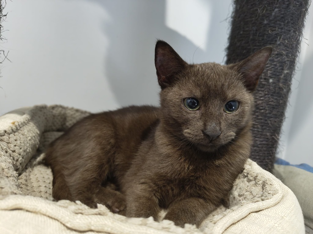 đ Banana is a beautiful and unique brown-Burmese looking kitten, who came to us as a scared kitten, alone and infested with parasites. She was so scared she would curl up in the nearest corner and hiss, but we could see that she was just trying to hide how scared and alone she was. The second we patted her, she would purr and lean into our hands.