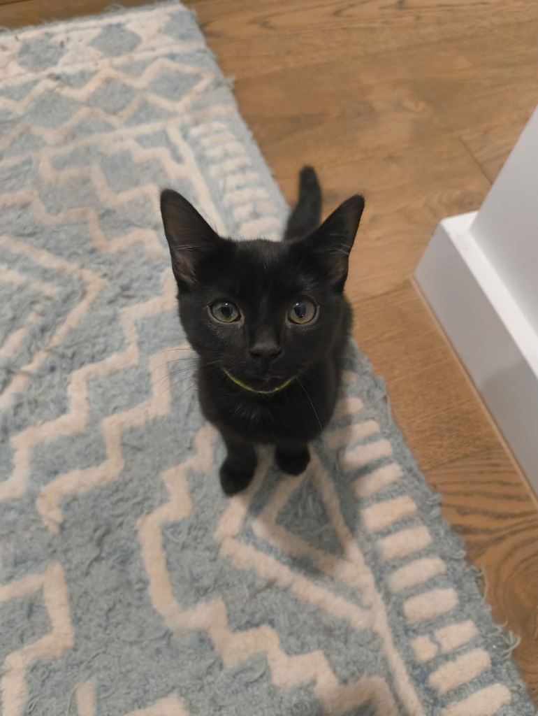 Nyx came to us with her sisters, Panda and Umbra and they are just the sweetest, most confident and affectionate kittens ever. They immediately trusted their new carer and jumped over each other for hugs and pats. They will do almost anything for pats and attention and purr whenever they get it!