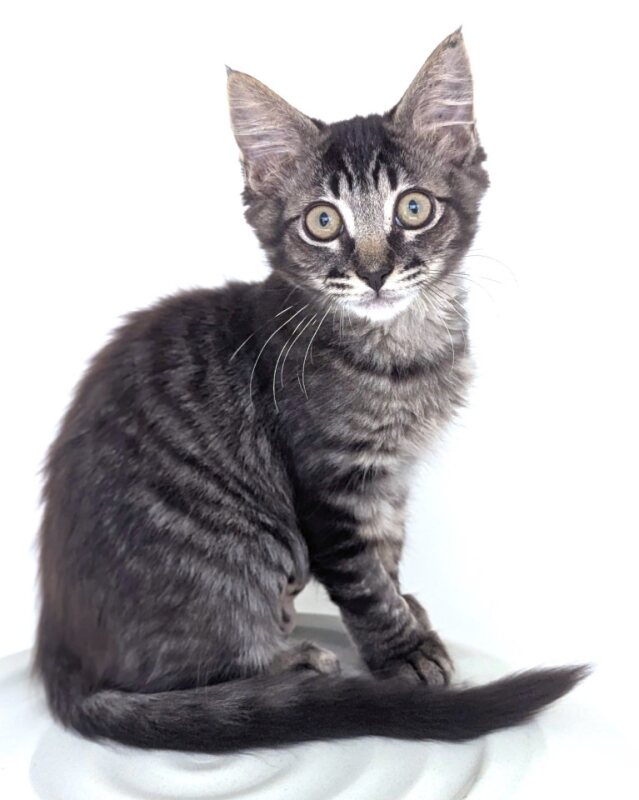 Hello there, I'm Chocolate! I'm a 2-month-old female Domestic Medium Hair kitten. Though I'm tiny, I have a mighty personality. I love to play, explore, and cuddle when I'm tired. My fur is as soft and delightful as my namesake. I'm currently mastering the art of purring, which I'll happily demonstrate for anyone who scratches my chin or rubs my belly. I'm looking for a loving home where I can grow and flourish. I promise to bring you joy, laughter, and endless cuddles. Adopt me, and let's make sweet memories together!